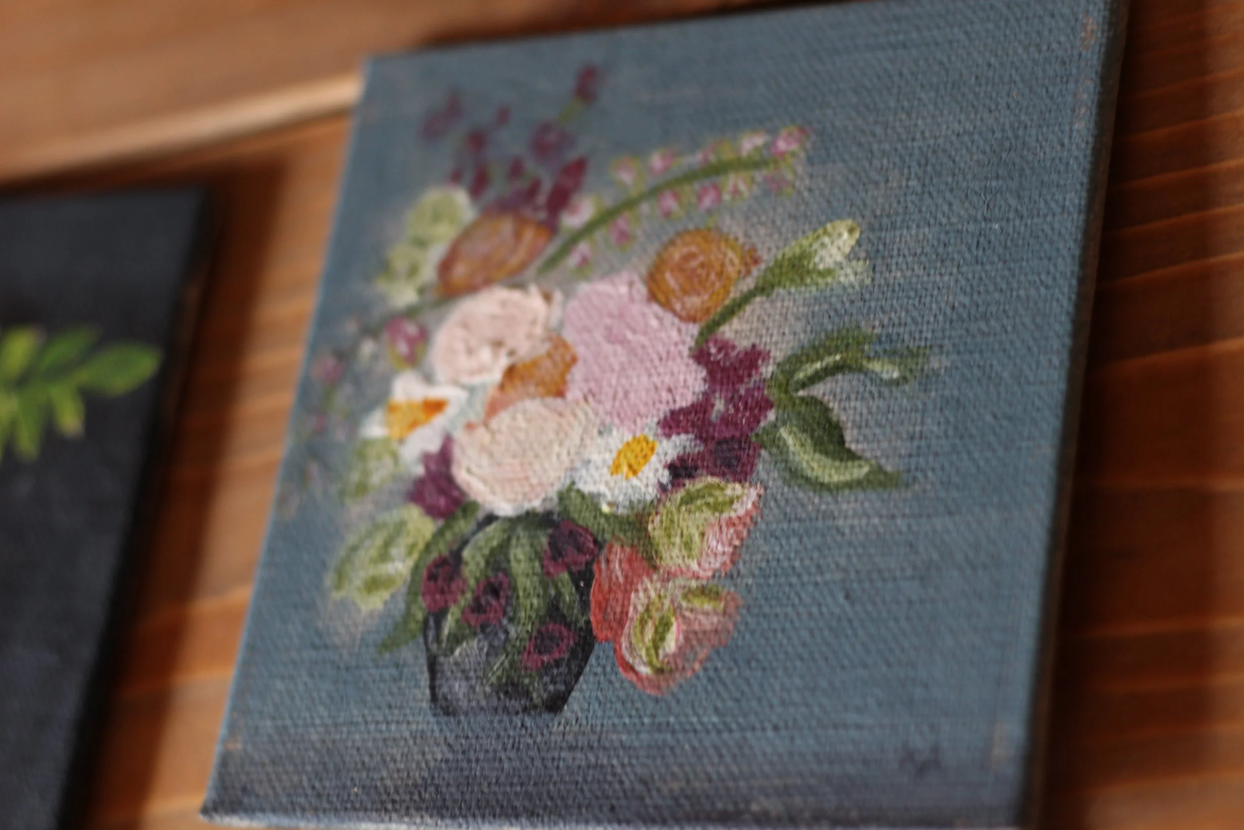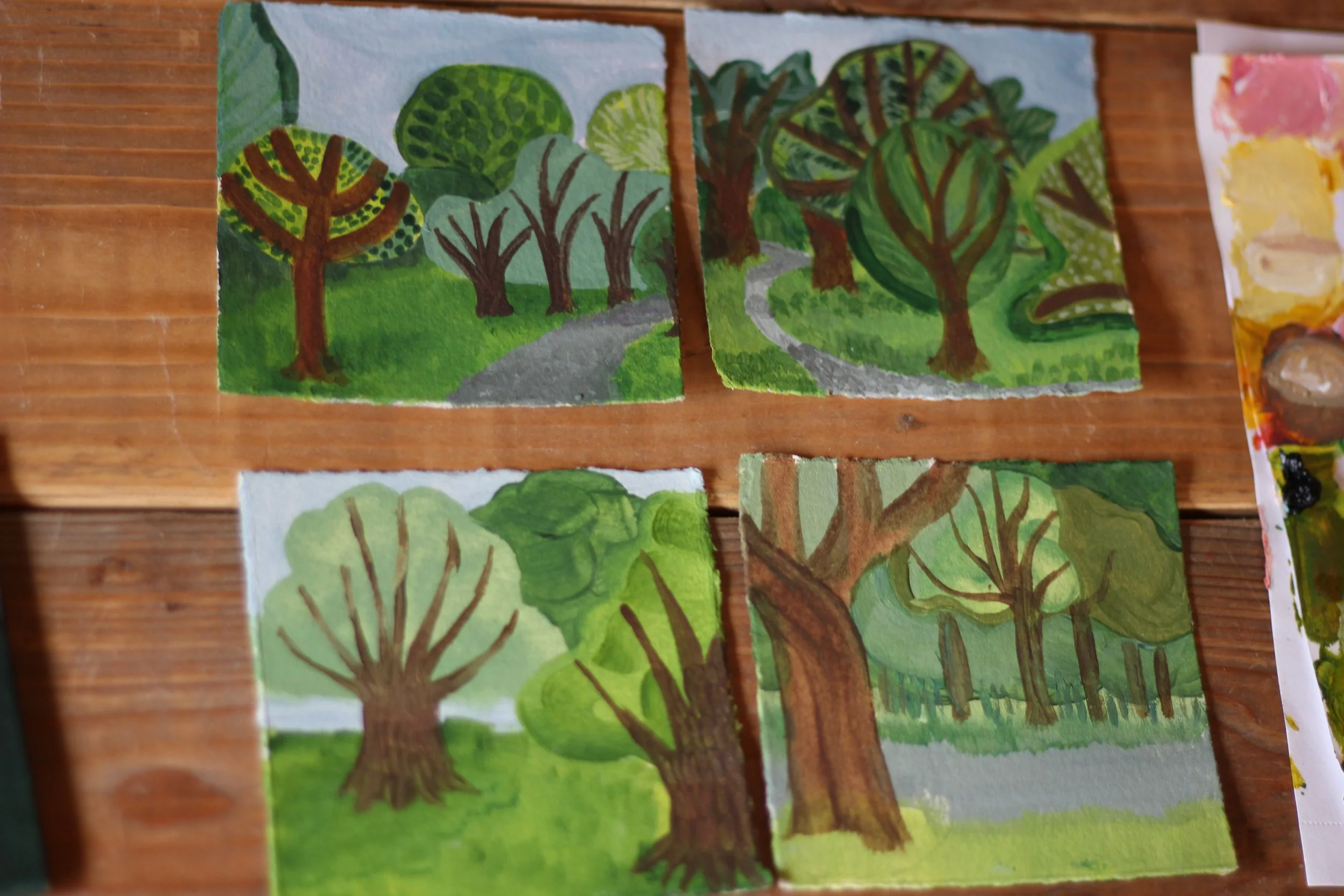 Works in progress and finished paintings.